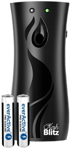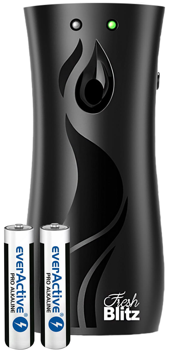 Dozownik Fresh Blitz BASIC BLACK Kala to funkcjonalne i estetyczne rozwiązanie do automatycznego odświeżania powietrza w toaletach, łazienkach oraz innych pomieszczeniach sanitarnych. Nowoczesny design w kolorze czarnym (BLACK) sprawia, że dozownik doskonale wpisuje się w wystrój zarówno obiektów komercyjnych, jak i nowoczesnych wnętrz domowych.