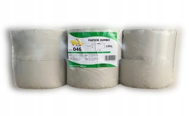Wysokiej jakości papier toaletowy Jumbo marki Fabryka Papieru Kaczory, wykonany w 100% z makulatury. Idealny do dozowników w miejscach o dużym natężeniu ruchu, takich jak szkoły, biura, hale produkcyjne czy obiekty użyteczności publicznej.