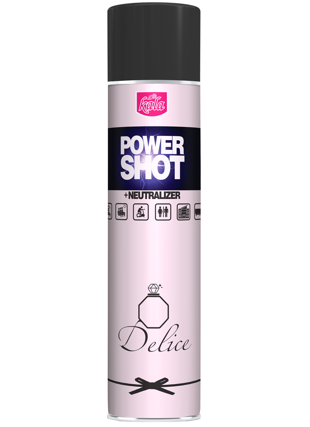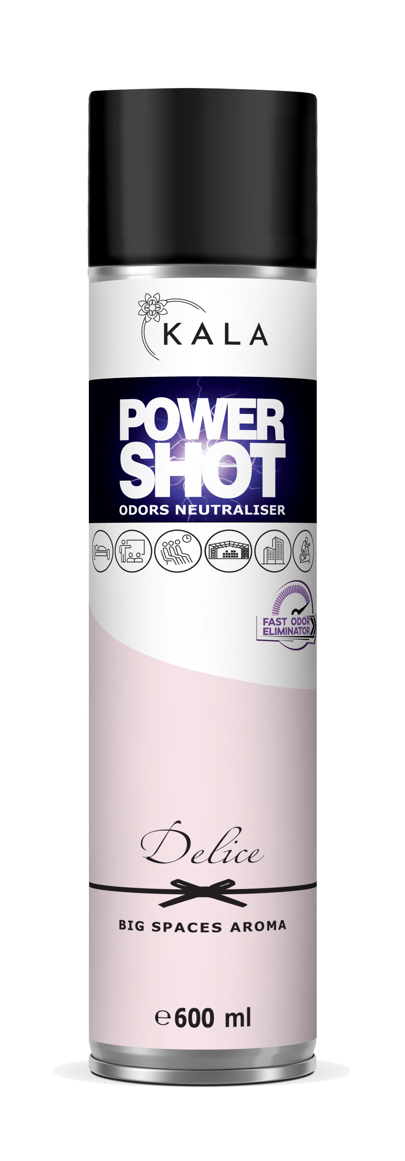Neutralizator nieprzyjemnych zapachów, aromatyzer odświeżacz Kala POWER SHOT 600 ml to produkt z rewolucyjnym sposobem dozowania, dzięki któremu jedno naciśnięcie wentyla (ok. 1 sekunda) neutralizuje nieprzyjemne zapachy oraz aromatyzuje około 200 m3.