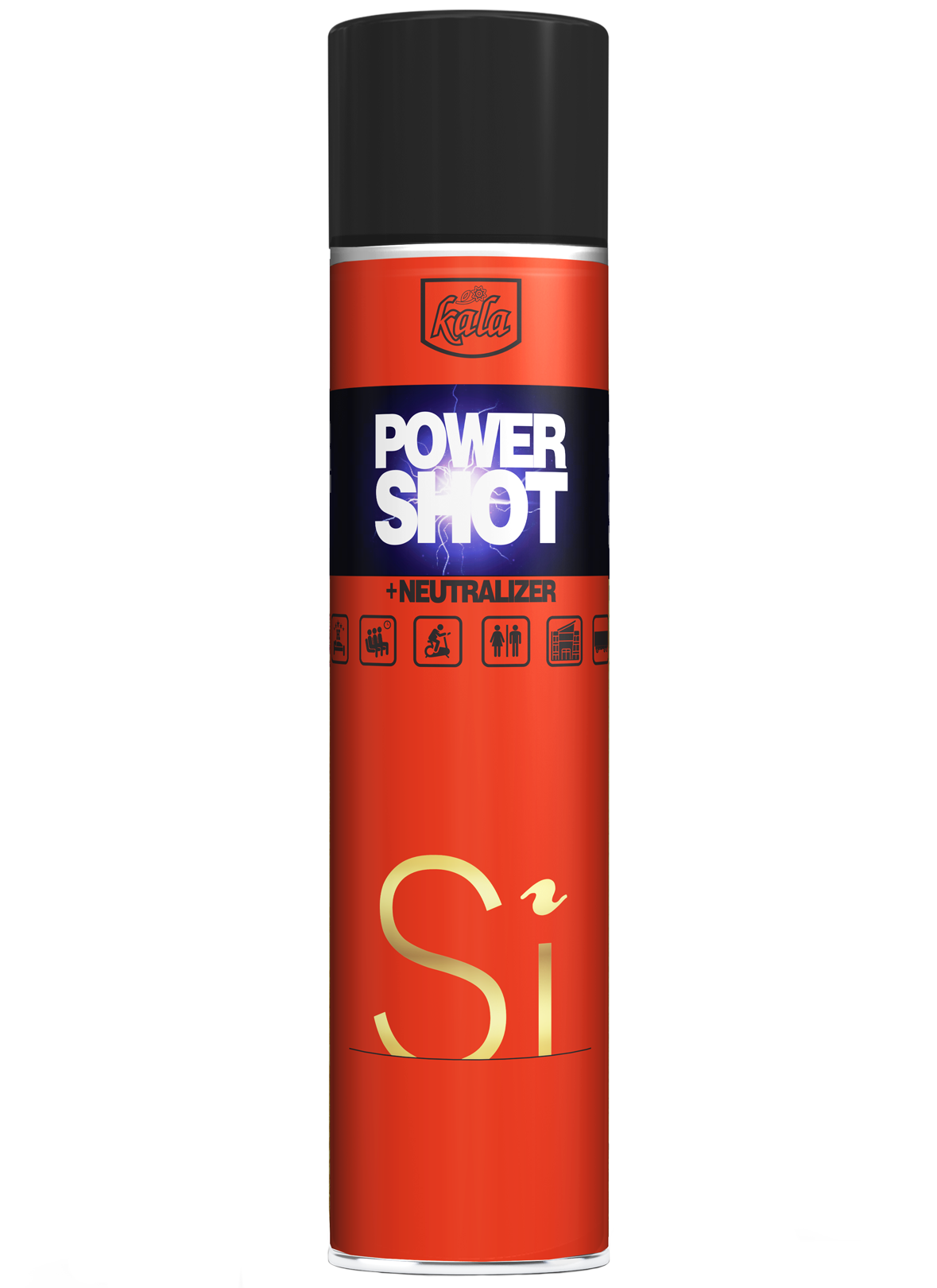 Neutralizator nieprzyjemnych zapachów, aromatyzer, odświeżacz Kala POWER SHOT zapach Si 600 ml to delikatny zapach czarnej porzeczki połączony z frezją oraz różą uzupełniają nuty drzewne, oraz paczula.